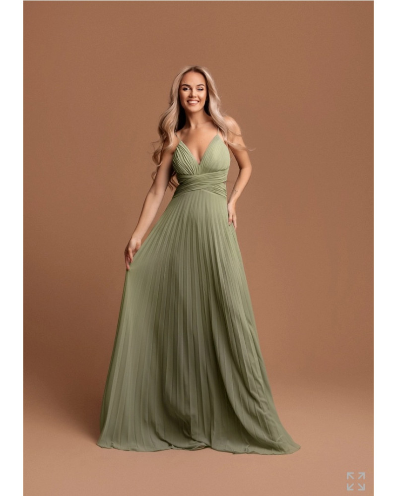 Robe de cocktail à fines bretelles, plissée, Vert Olive