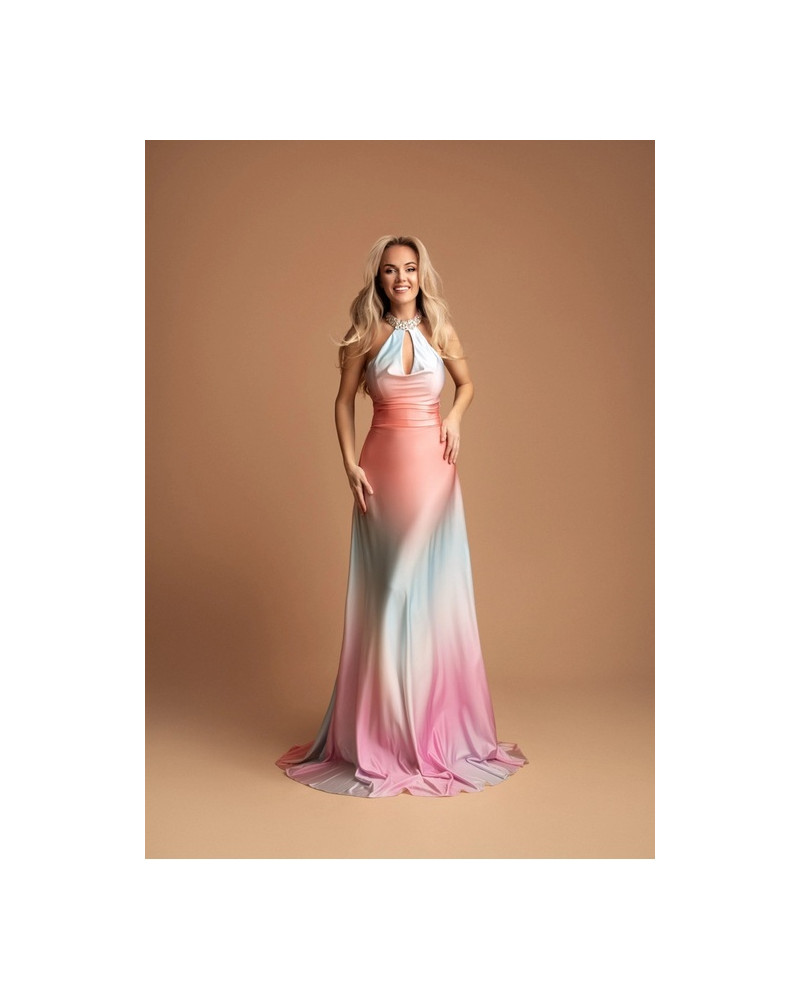 Robe longue de cocktail avec encolure strass, Multicouleur