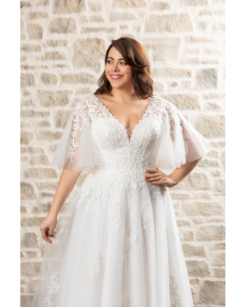 MAXIMS WEDDING - Robe de mariée, fluide en dentelle et mousseline