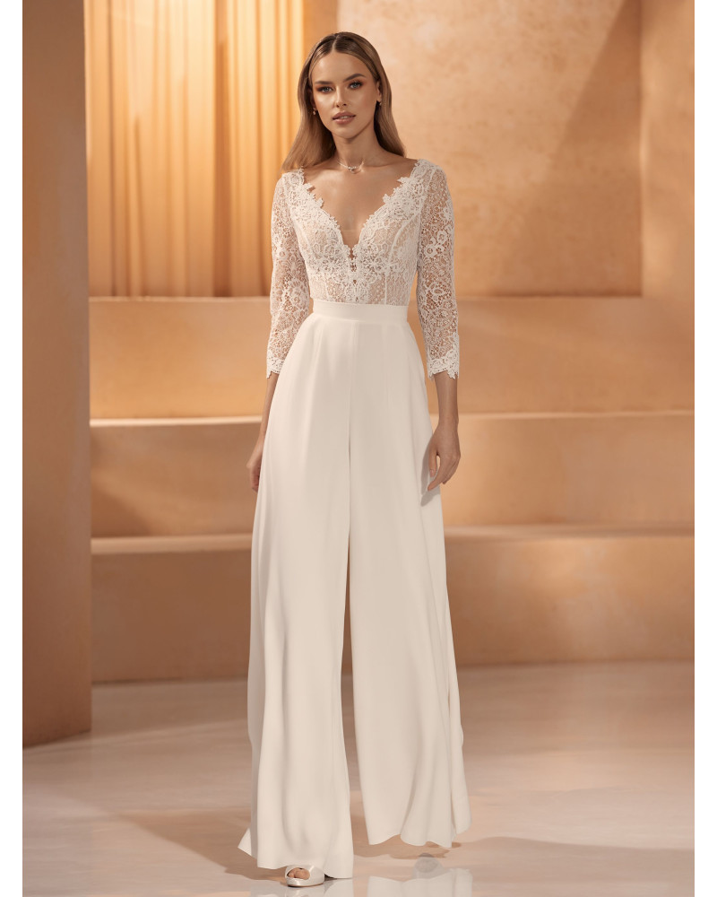 Combinaison de mariée, en crêpe stretch et dentelle, Ivoire