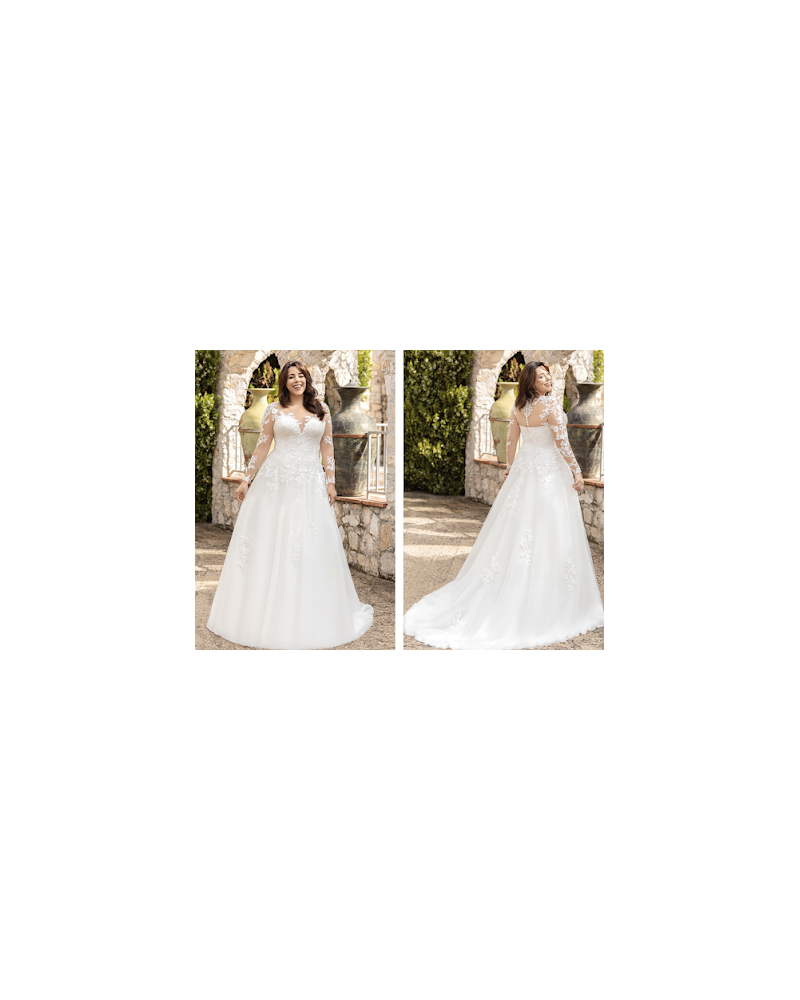 Robe de mariée, avec dentelle et strass, Ivoire / Nude
