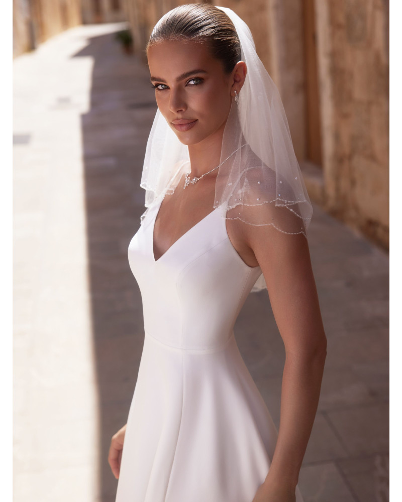 Voile en tulle souple à deux couches avec bord perlé longueur 80/60 cmtres